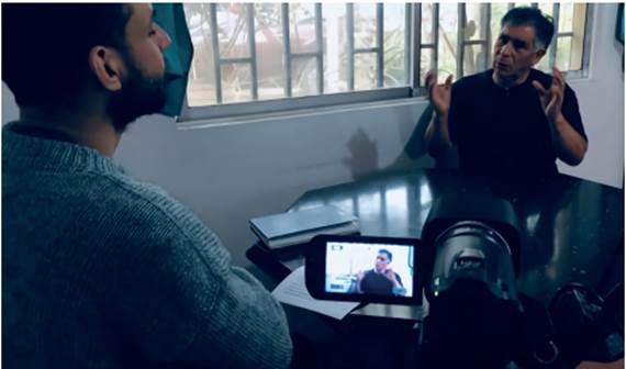 El período de levantamiento de los testimonios consta de dos etapas. La primera orientada al diseño y planificación del trabajo previo a la toma del testimonio -los tres meses iniciales del proyecto- y la segunda que consistió en la realización de las entrevistas -los meses cuarto a octavo-. El registro fue pensado en un formato de entrevista uno a uno. Es decir, una persona que entrevista y el sobreviviente, en un proceso que conllevó encuentros presenciales, preentrevistas grabadas en audio y entrevistas grabadas en formato audiovisual; estas últimas, en general, se sostuvieron durante dos horas (Massone, Fuenzalida y Sandoval 2020). De este modo, se conformó un archivo audiovisual de diez entrevistas que, a nivel metodológico, se posiciona desde un nuevo enfoque arqueológico-antropológico, y que enfatiza la representación de la vivencia sensorial, espacial y material del propio lugar (Fuenzalida 2020), así como la experiencia de la militancia y resistencia antidictatorial. Ver figura 3.