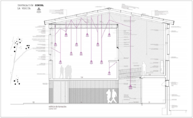 A partir de este contexto, el proceso de investigación-creación que dio forma a “La visita” se planteó desde una perspectiva etnográfica y experimental, basada en los materiales recopilados y sus trayectorias. La instalación, mediante el entrelazamiento de lenguajes sonoros, espaciales y conceptuales, propuso una obra de sitio específica en la ex cárcel de la ciudad de Valparaíso, hoy convertida en centro cultural, que conecta distintos recintos carcelarios separados por la distancia, el tiempo y sus actuales usos.