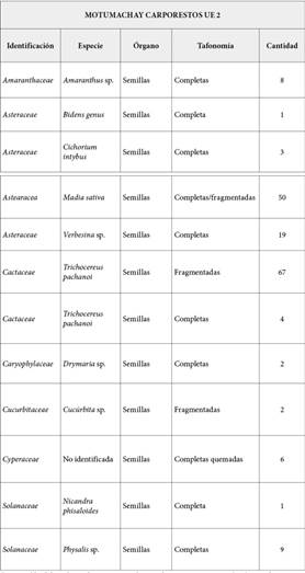 Excepto un fragmento de cucurbitácea registrada en campo, los carporestos fueron identificados en laboratorio tras analizar las muestras de tierra recogidas de esta unidad (figura 11).