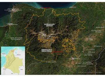 La comunidad de Nabusímake es considerada la capital del pueblo arhuaco y está ubicada en el departamento del Cesar, dentro del Resguardo Indígena Kogui Malayo Arhuaco. En Nabusímake está presente la huella de la misión capuchina que, con la excusa de satisfacer la solicitud arhuaca de educación, se instaló en el territorio por más de sesenta años, dando lugar a una de las épocas más violentas de la historia arhuaca (Bosa 2015). Por su parte, la comunidad de Katunsama o Katansama (figura 1), está ubicada en el departamento del Magdalena, en una zona llamada La Lengüeta, la cual tiene una dinámica compleja, nutrida por la colonización y presencia de población flotante motivada por la guaquería; el cultivo de marihuana5; la economía agropecuaria intensiva y de monocultivos; la presencia de grupos armados al margen de la ley, como paramilitares y guerrillas, y las poblaciones indígenas iku y kogui (Rodríguez 2018). Además de ser parte del Parque Nacional Natural Sierra Nevada de Santa Marta, en 1994 fue agregada al Resguardo Indígena Kogui Malayo Arhuaco, formando su salida al mar. Katunsama se constituyó como comunidad recientemente, con familias arhuacas que vivían por la zona, algunas de las cuales fueron desplazadas de sus comunidades de origen por la violencia.