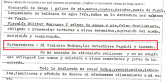 A pesar de estas limitaciones, durante la escucha, algunos declarantes indicaron los nombres de los perpetradores. Erika Hennings, activista en derechos humanos, declarante en la Valech 1 y exfuncionaria en la Valech 213, recuerda desde su rol de “escucha del Estado” que, si bien no había espacio para indicar los nombres, ella “agregaba hojas para poner los nombres que la gente quería dar porque nosotros no teníamos dónde preguntarlo”, otras veces, estos datos eran registrados en la sección de “observaciones” de la ficha (figura 3). De esta forma, en ocasiones, la identificación de los perpetradores era inscrita en la documentación e ingresaba como residuo en la carpeta del caso.