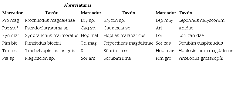 Por otro lado, el 9,9 % del material identificado a un nivel de resolución mayor al de clase está compuesto por restos correspondientes al orden Siluriformes; 1,02 % a los Characiformes; y 0,45 % a los Perciformes (tabla 5). Lo anterior se debe a que existen grandes similitudes en la estructura ósea de las especies que conforman estos órdenes, lo cual impidió identificar la totalidad de los restos a nivel de especie. A futuro, se busca que la consulta de una colección de referencia especializada permita refinar el nivel de resolución taxonómica de esta porción de la muestra.