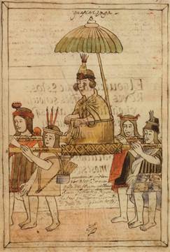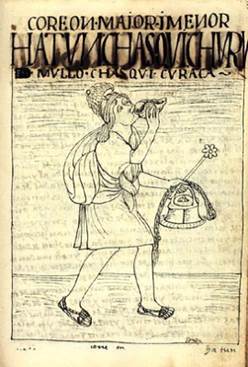 […] e se acuerda este testigo ver visto quando el dicho don Pedro yba a sus pueblos que llevaba consigo a la dicha Cosa Vanunchipac su muger la llevavan en una hamaca con munchas trompetas como señora principal e las otras yndias mancebas del dicho don Pedro llevaban chicha e maíz para dalles de comer. (declarante: Copulchon, AGI, Lima, f., 6v., kuraka: Don Pedro Angasnapon, 2a. persona de las siete guarangas de Cajamarca). (1995, 56)