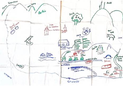 Este planteamiento metodológico permitió identificar las representaciones de los actores acerca del patrimonio arqueológico, es decir, esos signos, que en su mayoría caracterizan a los paisajes en gráficos y palabras. Además, entender cómo y por qué las personas tienen una valoración distintiva de ciertos elementos, no solo arqueológicos sino también naturales, que están vinculados con sus memorias locales e identidad cultural. Y, finalmente, comprender el significado de dichos elementos en el marco social de los territorios.