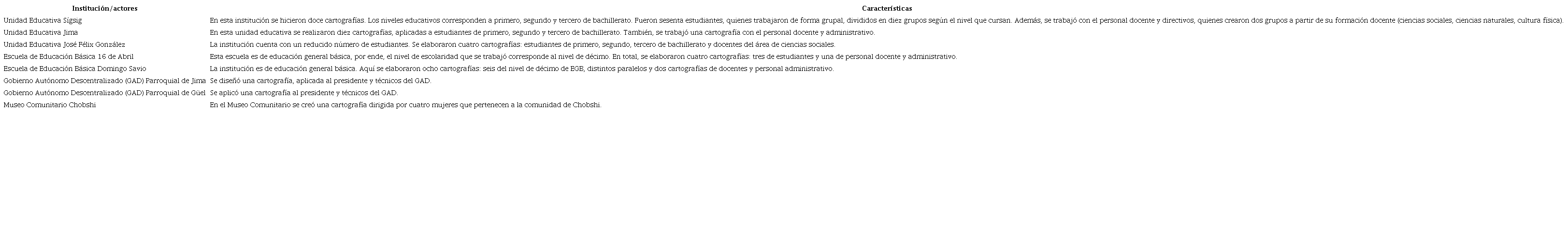 La cabecera cantonal de Sígsig y las parroquias de Jima y Güel fueron las localidades donde se realizaron las entrevistas y mapeos comunitarios, pues son espacios en los que predominan sitios arqueológicos diseminados por toda su extensión. Así, desde el sector educativo, el político público y el gestor cultural se identificó, a partir de un registro y mapeo de actores locales, a varias personas vinculadas directamente con la creación de textos históricos, la administración del museo comunitario, los contenedores de bienes arqueológicos, entre otros. La experiencia de los actores les faculta como autoridades del tema propuesto, quienes mediante las entrevistas y las cartografías (talleres participativos) reconocieron e incorporaron el conocimiento espacial local y plasmaron una realidad que registra debilidades, situaciones, problemáticas como procesos reflexivos y analíticos conjuntos (Álvarez y McCall 2019). De esta manera, el trabajo de campo se llevó a cabo en el transcurso de un año (doce meses), comenzando en diciembre de 2021 hasta diciembre de 2022.