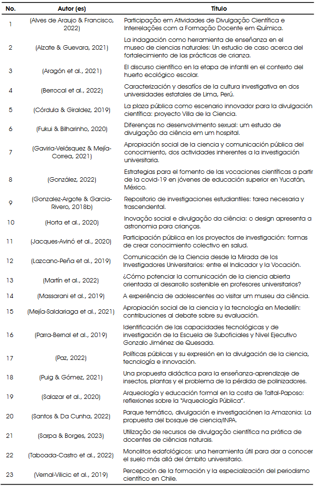 Modelos de Divulgación Científica y Acceso Universal al Conocimiento: una Revisión Sistemática