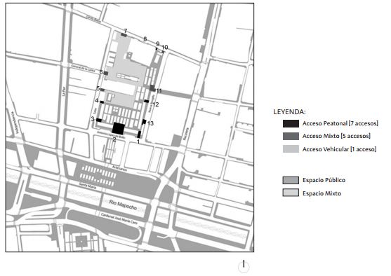 Nuestra investigación toma esta estructura de análisis como referencia y se concentra de manera particular en las características físico-espaciales, simbólico-espaciales, los usuarios y actividades que realizan en el lugar y la forma de control ejercido por los administradores de los espacios estudiados. Así, en primer lugar, se estudiaron las características físico-espaciales que integran la accesibilidad mediante la red de metro y transporte público, la cantidad y forma de accesos, la integración a la red peatonal del sector, las características funcionales del entorno (residencial, comercial, etcétera), el tipo de comercio existente y la potencial clientela a la que convoca. Por otra parte, se toman en cuenta las características simbólico-espaciales percibidas por los usuarios, es decir, cómo perciben el lugar, qué actividades y tipos de comercio los atraen y por qué, cómo perciben a los demás usuarios del lugar (sobre todo a los más pobres o diferentes). También se registraron las cualidades percibidas del lugar (seguro/inseguro, predecible/impredecible, entretenido/aburrido, etcétera). En tercer término, se consideraron las características de los usuarios y qué actividades realizan en el lugar. Esto se realizó mediante un levantamiento del nivel sociocultural de los usuarios, los lugares desde y hacia donde se desplazan, y los lugares específicos del comercio visitados. Por último, se registró la forma en que se ejerce el control por la administración y los locatarios en el lugar. Se identificó quién ejerce el control y las repercusiones con relación a los usuarios.
