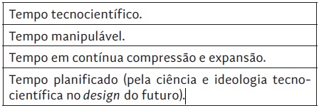 Apresentamos na tabela 1, de forma resumida, as principais características do tempo, tal como a experiência contemporânea.