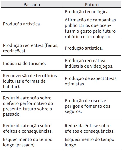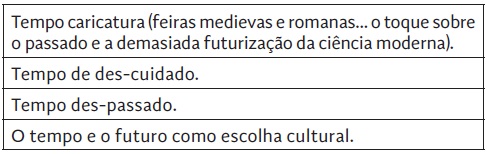 Na tabela 4, indicam-se os principais vetores de esquecimento do tempo, tal como expostos ao longo do texto.