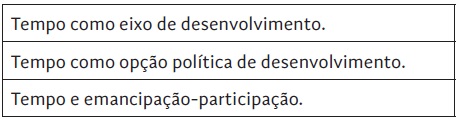 Na tabela 3, resumem-se os principais eixos de esquecimento do tempo cultural e social.
