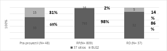 Con posterioridad a este trabajo se publicó información sobre tres nuevos sitios postcontacto. Uno de ellos -BLG 2-, excavado y analizado por una de nosotras (Sacchi 2013), motivó un reanálisis, cuyo resultado fue un notable incremento en las frecuencias de puntas de proyectil (ver más adelante). A partir de esto se propuso analizar la particularidad de este sitio, así como agregar variables más específicas que permitieran entender si existieron otros factores antes no considerados -como el emplazamiento de sitio y/o los funcionales- que podrían haber afectado la presencia de cabezales líticos en los conjuntos postcontacto.