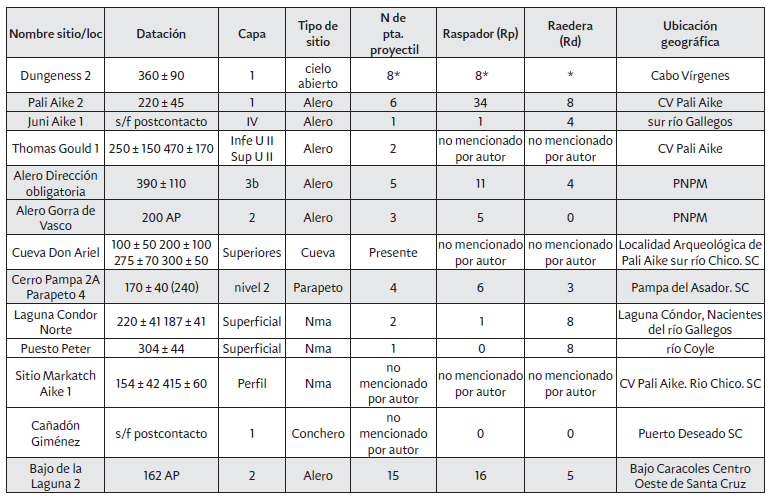 En este análisis se tendrán en cuenta también las consideraciones sobre los procesos postdepositacionales y los sesgos de investigación que podrían haber afectado la detección de sitios postcontacto y, consecuentemente, la cantidad y las frecuencias de puntas de proyectil, raspadores y raederas en dichos sitios.