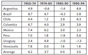 Further evidence of structural change is also suggested by an increase in manufactured exports, though the evidence may be challenged. The value of industrial exports from Brazil rose from a figure that, in 1955, hardly registered in the export schedule to reach 14 percent of total exports by 1970. Over the same period, the value of manufactures exported from Mexico increased from 12 percent to 33 percent of total trade -a proportion that was not so far from that achieved by some of the East Asian newly-industrialising countries (NICs) a few years earlier (Gereffi & Wyman 1990, 15). Positive constructions placed upon this achievement must be qualified by reference to the share of exports in manufactured output and the nature of the trade. Although manufactured exports may have accounted for a growing proportion of total exports, manufactured exports as a share of total industrial output remained low. In the Argentinian case, less than one percent of total manufactured output was exported in 1960: the figure for 1973 was 3,6 percent. Between 1960 and 1973 the share of Chilean manufactured output exported actually fell, from 3.0 percent to 2.5 percent. The figures for Brazil for the two years were 0.4 percent and 4.4 percent respectively; for Mexico 2.6 percent and 4.4 percent; for Colombia, in this respect the best performing economy, 0.7 and 7.5 percent (Kaufman 1990, 130). This ‘inward-bias’ contrasts with data for export-led industrial deepening in East Asia. In the 1970s it became fashionable to cast further doubt on the dynamics (and the dynamic affects) of even this modest export performance. Rather than marking increased efficiency and international competitiveness on the part of industrial enterprises in Latin America, the growth in manufactured exports simply reflected the ‘transnationalisation’ of world trade in manufactures which was becoming intra-corporate rather than inter-country (Jenkins 1987, 95-122, 165-194; 1991). However, it must be remembered that ‘Latin American’ TNCs were participating in this ‘transnationalisation’ of global trade: not all corporations were ‘foreign’ (Díaz Alejandro 1977; Jenkins 1987, 144-164; Katz & Kosacoff 1983; Bisang, Fuchs, & Kosacoff 1992). While external operations by Latin American TNCs hardly compare with that of overseas corporations in Latin America, foreign activities by these enterprises supports arguments both about the transnationalisation of business and the entrepreneurial behaviour of manufacturing firms founded by Latin American grupos. In addition, it must be remembered that markets in Latin America were larger and, possibly deeper, than in the newly industrialising economies of East Asia. In East Asia, the ‘easy’ phase of early industrialisation focused on domestic markets was short -often barely an option, even if it may be argued that a focus on internal markets lasted ‘too long’ in the larger economies of Latin America (Jenkins 1991; Grinberg 2011).