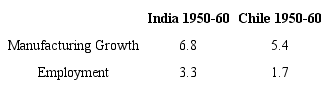 The continual march toward substitution of increasingly capital-intensive goods was also a near ubiquitous choice in postwar IS programs, and Brazil, India and Chile were no exception. Policies provided generous subsidies to almost any new domestic producer and would often require existing producers to incorporate newly substituted (high cost and often low quality) products as inputs. In addition to protection on final products, subsidies granted to firms moving into more capital-intensive production included exchange subsidies and tariff reductions on inputs, and loans at negative real interest rates, all of which reduced the costs of investment.5 The requirement to continually incorporate domestic inputs, which over time were increasingly poor substitutes for what could be imported, added another layer of inefficiency in the productive structure. In other words, this policy mix virtually ensured the proliferation of increasingly inefficient firms. One of the most unfortunate results of these policies was limited job creation. As Table 3 and the discussion below shows, manufacturing growth far outpaced employment growth in each of the three countries.