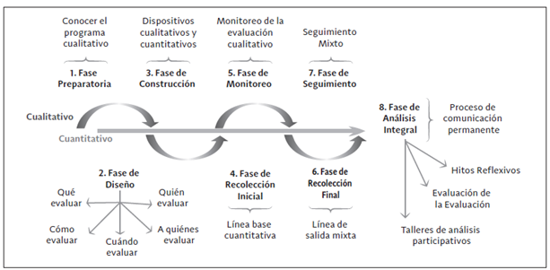 Así, ante las limitaciones encontradas en ambos paradigmas de evaluación, se desarrollaron modelos que empleaban métodos mixtos (Bouza 2005), como el modelo de utilización focalizado en educación (Patton 1978). Sin embargo, a estos modelos se les cuestionó, a su vez, la falta de integración de sus resultados, y se observó también que muchas veces hacían un uso secundario (Aguilar y Ander-Egg 1992; Valadez y Bamberger 1994) o errado de los métodos cualitativos (como en Plewis y Mason 2005).