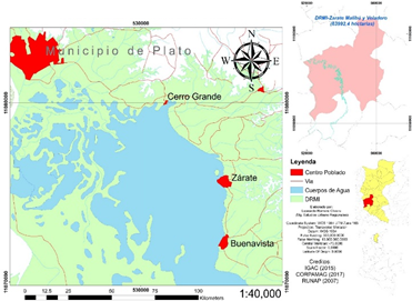Este complejo cenagoso está ubicado en el departamento del Magdalena, en jurisdicción de los municipios de Plato y Santa Bárbara de Pinto (ver mapa 1). Es un área regional protegida con categoría de distrito de manejo integrado (DMI)1 y tiene una extensión de 63.992,45 hectáreas, de las cuales 17.269 corresponden a cuerpos de agua (ciénagas y caños). Este complejo hace parte de la cuenca sedimentaria de la Depresión Momposina, cuya característica principal es la presencia de humedales interiores palustres, permanentes y emergentes, con fluctuaciones constantes de los volúmenes de agua de acuerdo con las variaciones climatológicas (Ministerio del Medio Ambiente y Consejo Nacional Ambiental 2002; Jaramillo, Cortés y Flórez 2015).