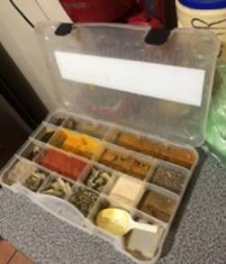 Mohnish Rao vive lejos del centro de la ciudad. Por este motivo, tiene muchas dificultades para encontrar los elementos rituales, así como para recrear las comidas típicas de su país. Durante sus visitas a los mercados sobrerruedas de Tijuana compra especias y las verduras para la comida de la semana. Entre sus recorridos logró encontrar una pequeña caja (imagen 3) donde almacena algunas especias que trajo desde India, las que le han regalado y aquellas que compra en Tijuana. En las entrevistas señaló que, gracias a su dominio del español, tiene la habilidad de “regatear” los precios.