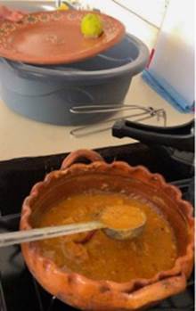 Para esta familia, Sāī Bābā constituye el guru familiar, no necesariamente una divinidad. Entre las adaptaciones que realiza la jefa de familia, la comida resulta la más importante, ya que, tanto como le es posible, prepara comida india en casa. Entre sus preparaciones destacan las dosas, el sambar (imagen 8)27 y los ladoos; también han adoptado platillos mexicanos como burritos y quesadillas. Con excepción de unas pocas veces al mes en que comen carne de pollo, su dieta se mantiene vegetariana.