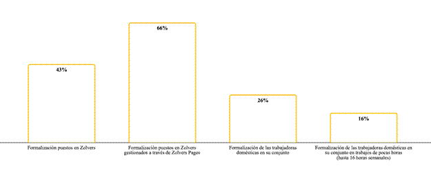 En línea con la tendencia a una mayor presencia de las regulaciones estatales, la plataforma propone dos prestaciones adicionales, vinculadas con la formalización de las contrataciones que promueve. En primer lugar, ofrece a los hogares empleadores asesoramiento gratuito sobre la realización de los trámites del registro del contrato de trabajo. En segundo lugar, propone un sistema de gestión administrativa y contable, denominado Zolvers Pagos. A través de este sistema, la plataforma se ocupa de la liquidación de los haberes mensuales -lo que puede incluir la apertura de una cuenta bancaria-, la generación de los recibos de sueldo y, en caso de que los empleadores quieran formalizar la relación laboral, los trámites del registro y el pago de las contribuciones patronales.