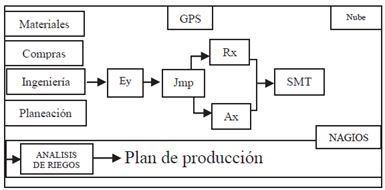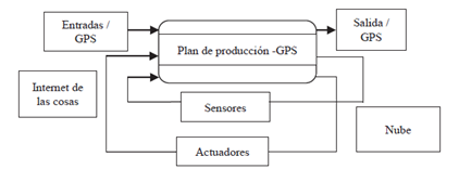 La tecnología GPS (Schwartz, 2015), permite mostrar datos importantes sobre las condiciones de trayectoria del material requerido y sus posibles rutas más óptimas. Se encuentra relacionado con el internet de las cosas, como un pegamento entre la caracterización de todo el sistema para localizar en tiempo real y notificar de forma remota material necesario en la producción. Este caso de estudio relaciona cada proceso, iniciando en el rastreo de material y terminando en el producto aeroespacial final, como lo muestra la figura 4.