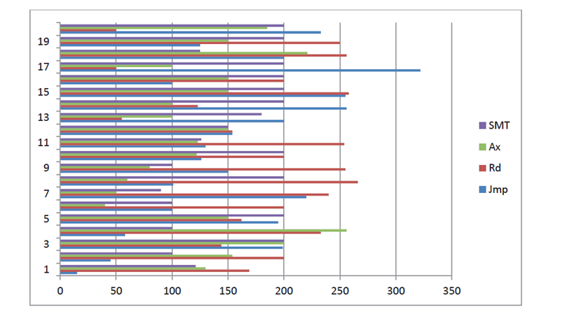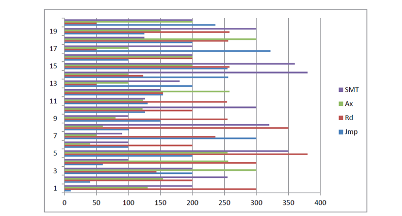 El integrar diferentes procesos de producción y sincronízalos en un solo algoritmo ciberfisico es complejo, ya que intervienen variables que se entrelazan y repercuten en distintas áreas del proceso. La métrica para verificar si funciona dicho algoritmo ciberfisico; fue tomando tiempos de los diferentes procesos (ey,ax,rd,smt) en un lote de producción de 1000 piezas del tablero “Flow” que es parte de un instrumento de velocidad vertical llamado variómetro. Los tiempos se redujeron de 390 horas (figura 10), a un promedio de 280 horas (figura 11). Aun se requiere hacer más pruebas para verificar el comportamiento y analizar en diferentes lotes de producción es decir en diferentes tableros aeronáuticos.
