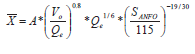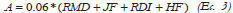 [Ec. 2]Cunningham C., indica que en tipos de rocas muy débiles A=8 y el límite superior es A=12 ; Una alternativa para cuantificar mejor la selección de "A", es utilizando el Índice de Volatibilidad propuesto inicialmente por Ather Lilly en 1986, en cual ha sido adaptado para esta aplicación por Cunningham C., en 1987. La ecuación es la siguiente: