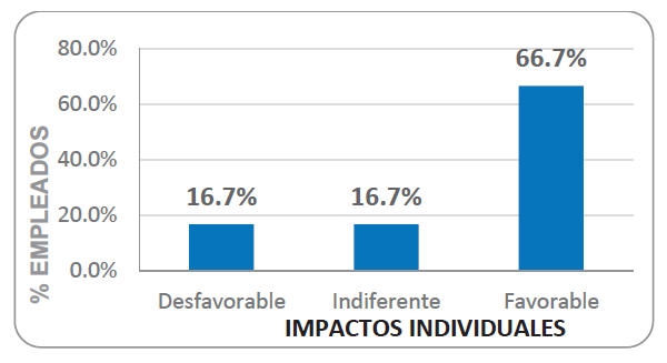 · Impacto Individual: incluido el aprendizaje del personal y su crecimiento profesional, su criterio para la toma de decisiones, y su productividad