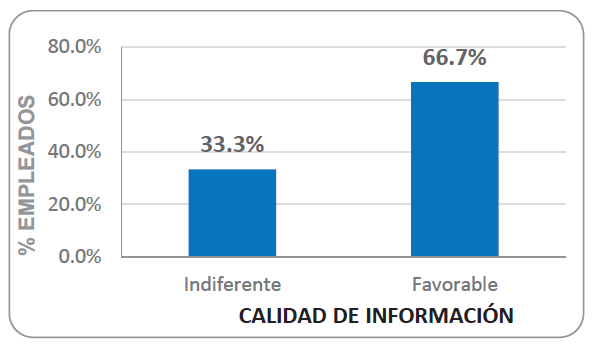 La dimensión calidad de información de un sistema de información tuvo una percepción favorable (66.7%), frente a un 33.3% con una percepción desfavorable. Este resultado se explica, porque los sistemas de información son precisos, pero a veces no en la mayoría de las MyPES, además la información está en una forma que fácil de usar, sin embargo, la información no siempre está disponible (Ver Tabla 5, Figura 4).