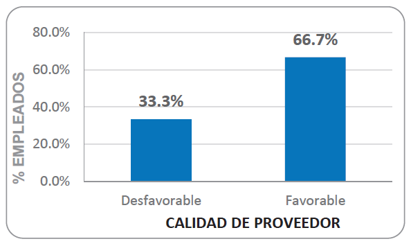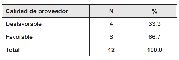 La dimensión calidad del proveedor tuvo una percepción favorable (66.7%), frente a un 33.3% con una percepción desfavorable. Este resultado se explica, porque los sistemas de información permiten conocer el posicionamiento en el mercado del proveedor en la mayoría de las MyPES, facilitan los servicios o productos online de los proveedores y conocer la disponibilidad del proveedor en cuanto a los servicios o productos que brindan, sin embargo, aún no ha sido muy eficiente para medir el cumplimiento de los plazos de suministro y conocer la experiencia o desempeño en el mercado del proveedor (Ver Tabla 6, Figura 5).