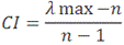 Dado que n equivale al número de subcriterios (n=6), constituye un dato requerido para obtener el índice de consistencia (CI) mediante la expresión: