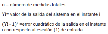 En ese sentido, el progreso del valor de la salida (Yi) hasta alcanzar el valor del escalón es leído durante n espacios de tiempo, calculando el error cuadrático medio (ECM) de la siguiente forma: