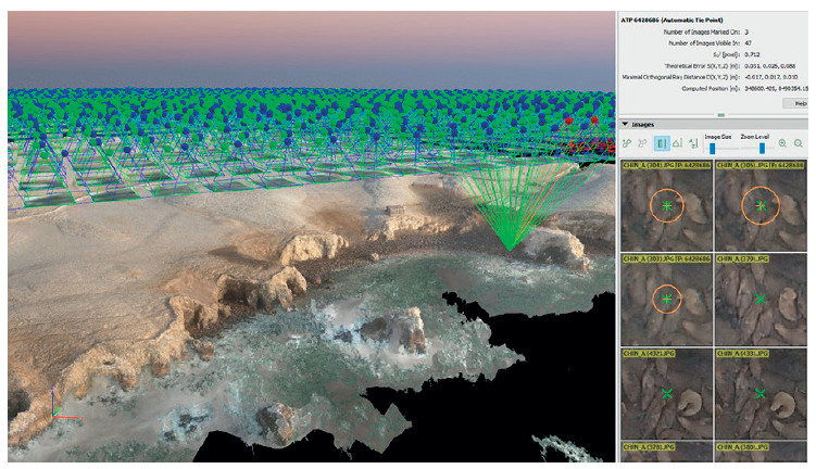 Cumplidas las etapas anteriores, se configuró el proyecto para obtener una ortofoto con resolución de 2 centímetros por pixel y un modelo en tres dimensiones de la isla Chincha Sur.