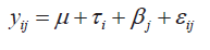 Se utilizó el Diseño Experimental de Bloques Completamente Aleatorio (DBCA) conocido como diseño de doble vía (Montgomery, 2004), que se aplica cuando el material es heterogéneo. En este diseño las unidades experimentales son heterogéneas; las unidades homogéneas están agrupadas formando los bloques, en cada bloque se tiene un número de unidades igual al número de tratamientos; los tratamientos están distribuidos al azar en cada bloque, el número de repeticiones es igual al número de bloques. Bajo el siguiente modelo: