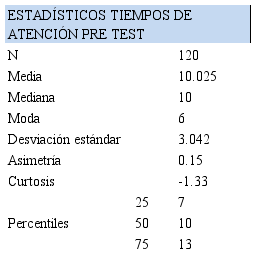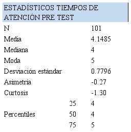 A continuación, en la tabla 1 se presenta el Análisis Descriptivo de la Situación pre test, cuya variable dependiente son los tiempos de atención de ciento veinte (120) Licencias de Funcionamiento que fueron tramitadas en la Municipalidad Provincial del Callao.