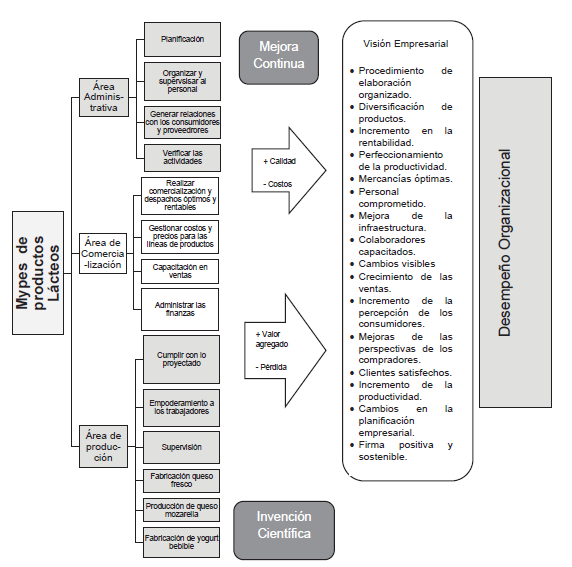 Modelo del desempeño organizacional con mejora continua e invención científica en mypes de productos lácteos