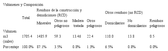 Por otro lado, el Observatorio Ciudadano Lima cómo Vamos (2015, p.15), en su informe Evaluando la Gestión de Lima - Quinto Informe de Resultados sobre Calidad de Vida, señala que en el 2013 Lima y Callao han producido alrededor de 7452.67 toneladas de residuos sólidos municipales al día. El volumen de residuos sólidos de ese mismo año (ver tabla 1) en construcción fue de 1581.06 miles de m3 de un total de 1705.4 miles de m3, es decir, el 92.7% del total, siendo la mayor parte residuos minerales (1485.9 miles de m3) los cuales pueden ser reprocesados.