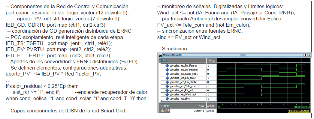 A través de la tecnología de dispositivos electrónicos inteligentes sobre hardware reconfigurable (R-IEDs), para la configuración de elementos del sistema de potencia (Sandoval-Ruiz, 2018a) se busca la simplificación de las actividades de forma remota y la optimización dinámica del sistema para máxima eficiencia en los convertidores de energías renovables no convencionales ERNC y mitigación del impacto ambiental. Considerando a la vez, la estimación de consumo de potencia en el diseño de los IEDs (Sandoval-Ruiz, 2014).
