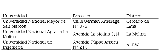 La unidad de análisis estuvo compuesta por estudiantes matriculados de pregrado y posgrado, pertenecientes a los campus que concentran la mayor cantidad de programas de estudios en las tres universidades públicas socias que integran la Alianza Estratégica de la Universidad Peruana (Ver Tabla 1).