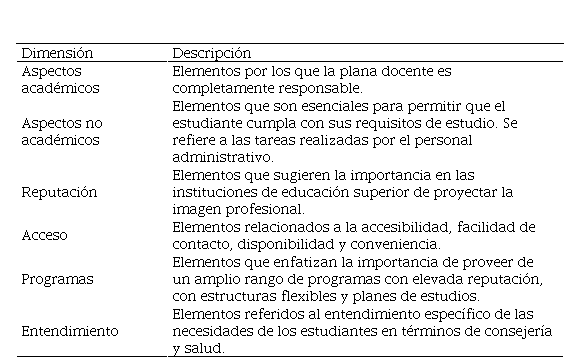 En la Tabla 3, se muestra a detalle la descripción de las 6 dimensiones que propone el Modelo HEdPERF, cuya correcta comprensión permitió la interpretación de los resultados obtenidos en el presente estudio y facilitó la discusión posterior de las implicancias de este artículo.