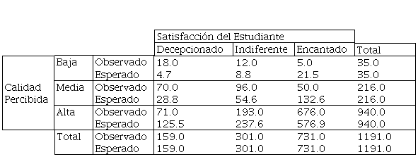 Los resultados para la primera hipótesis de investigación se muestran en la Tabla 7, donde se observa que los estudiantes que calificaron la calidad percibida de los servicios como “alta” fueron los que más satisfechos estuvieron con dichos servicios educativos.