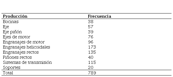 La población elegida para este estudio fue el total de la producción de repuestos del año 2018, es decir, las 789 piezas fabricadas, según se indica en la Tabla 1.