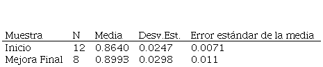 Prueba T e IC para dos muestras: Inicio y Mejora final