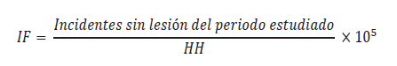 2. Índice de frecuencia de incidentes sin lesión (IFIS). Este índice se obtiene para validar los efectos presentados en el desarrollo del MGC.