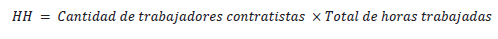 Es importante indicar que las horas hombre (HH) se obtienen del producto entre el número de trabajadores del grupo de referencia y el número de horas trabajadas por los mismos (ILO, 2020). En este caso, el grupo de referencia está conformado por los trabajadores contratistas.