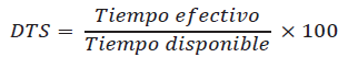 3. Disponibilidad de tiempo para el servicio (DTS). De manera semejante a los indicadores de bienes y productos, el tiempo disponible para brindar un servicio tiene la siguiente fórmula: