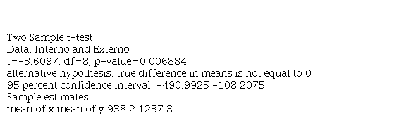 Se comparan los mantenimientos internos y externos de la empresa con la prueba t de Student para muestras independientes.