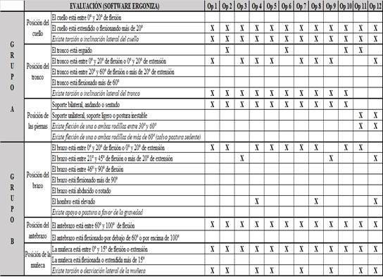 Se realizó la evaluación mediante el método RULA con la información solicitada por el software, la cual se muestra en la Tabla 5.