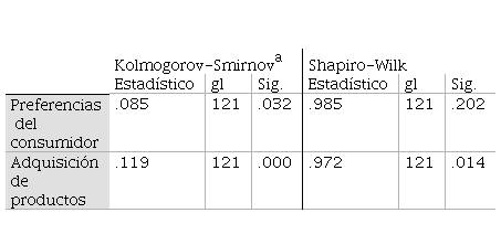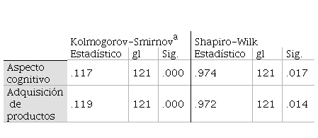 Para la comprobación de la hipótesis, primero se utilizó la prueba de normalidad de Kolmogorov-Smirnov para los 121 datos; luego, de acuerdo a los datos obtenidos, se utilizó el estadígrafo Rho de Spearman.
