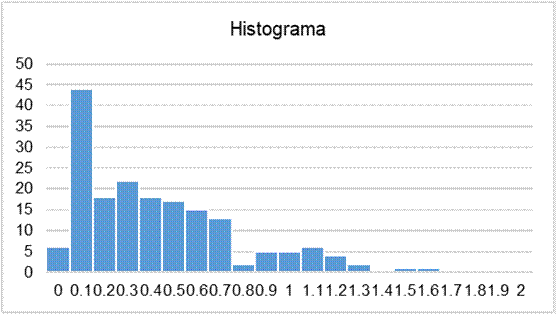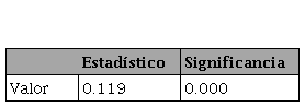 Los resultados de la prueba Kolmogórov-Smirnov mostrados en la Tabla 4 demuestran que los 180 datos evaluados no se ajustan a una distribución normal, dado que el valor de significancia obtenido es menor al valor p esperado de 0.05, por lo que se acepta la hipótesis nula (H0). Este resultado se complementa con lo observado en el histograma (Figura 1), donde se aprecia de manera gráfica cómo los valores estudiados no se asemejan a la campana de Gauss, sino que poseen una tendencia hacia la izquierda.