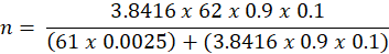 Al aplicar la fórmula se encuentra que n = 43, tal como se observa a continuación.